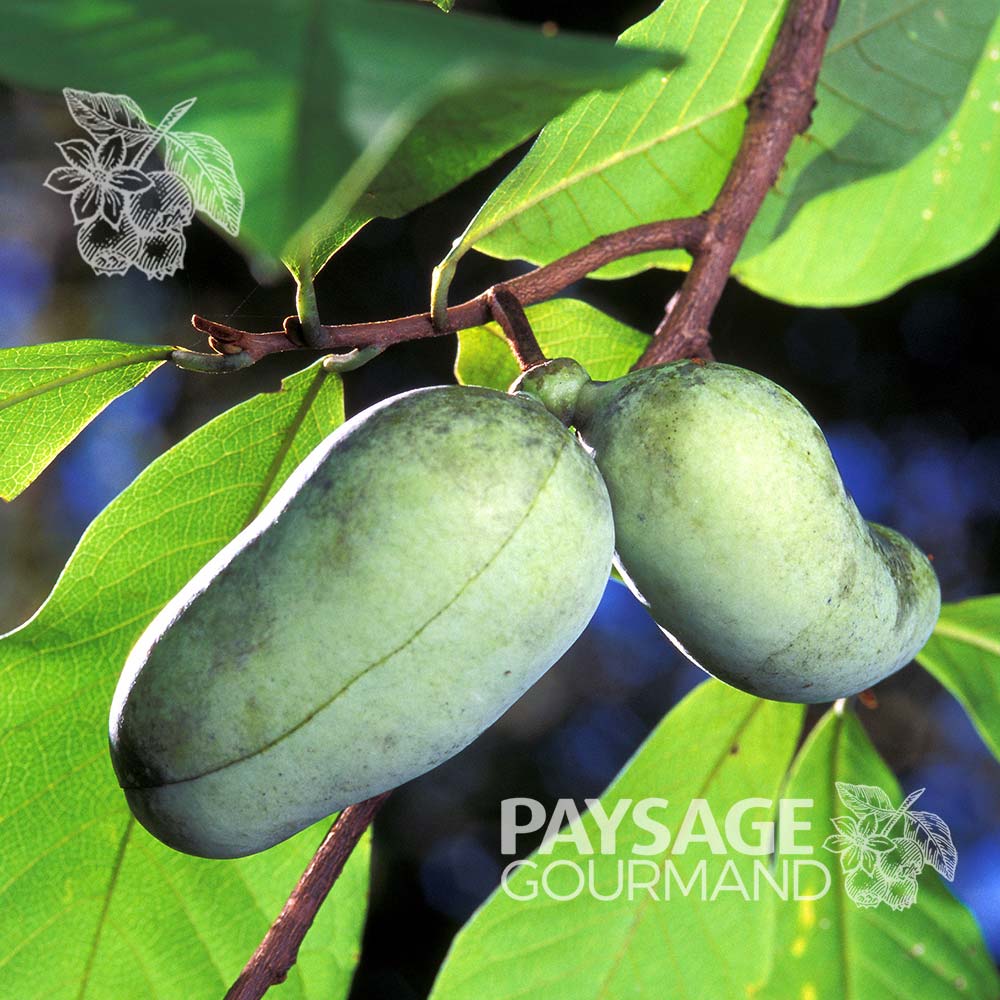 Semblable à la papaye (d’où le nom Paw Paw dériverait), elle nous fait voyager avec un goût tropical que certains comparent à la mangue, la banane, l’ananas, avec une texture de costarde et de banane mûre et parfois une pointe de caramel. Extraordinaire! La pollinisation croisée exige d’en planter deux spécimens ou davantage pour obtenir les fameux fruits, qui tombent du petit arbre à l’aspect exotique lui-aussi, tard en automne.
