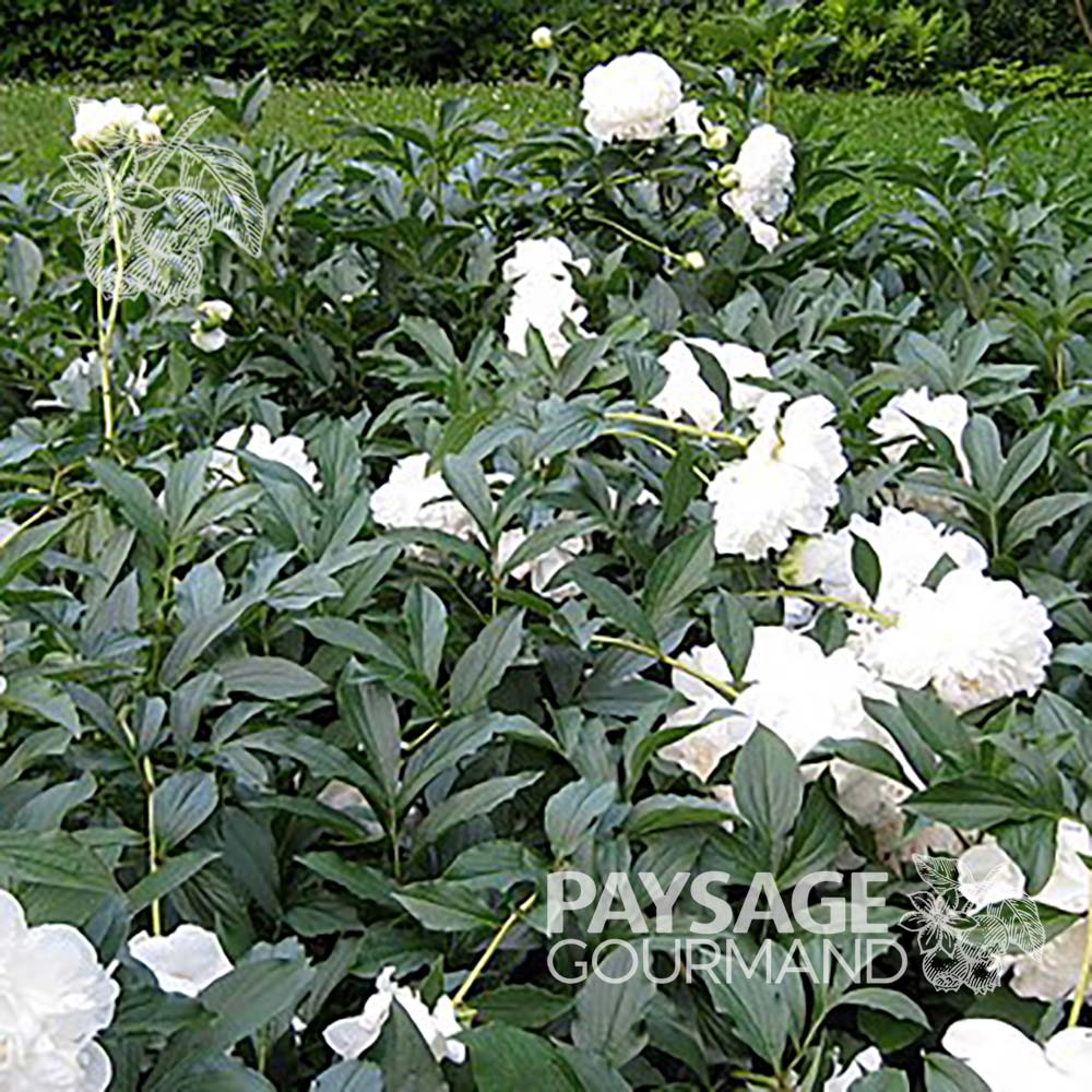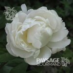 La pivoine ‘Duchesse de Nemours’ (Paeonia lactiflora) déploie un feuillage lustré et de magnifiques fleurs volumineuses blanches qui peuvent retomber, surtout sous la pluie. On utilise ses gros pétales en petites quantités dans des recettes créatives.