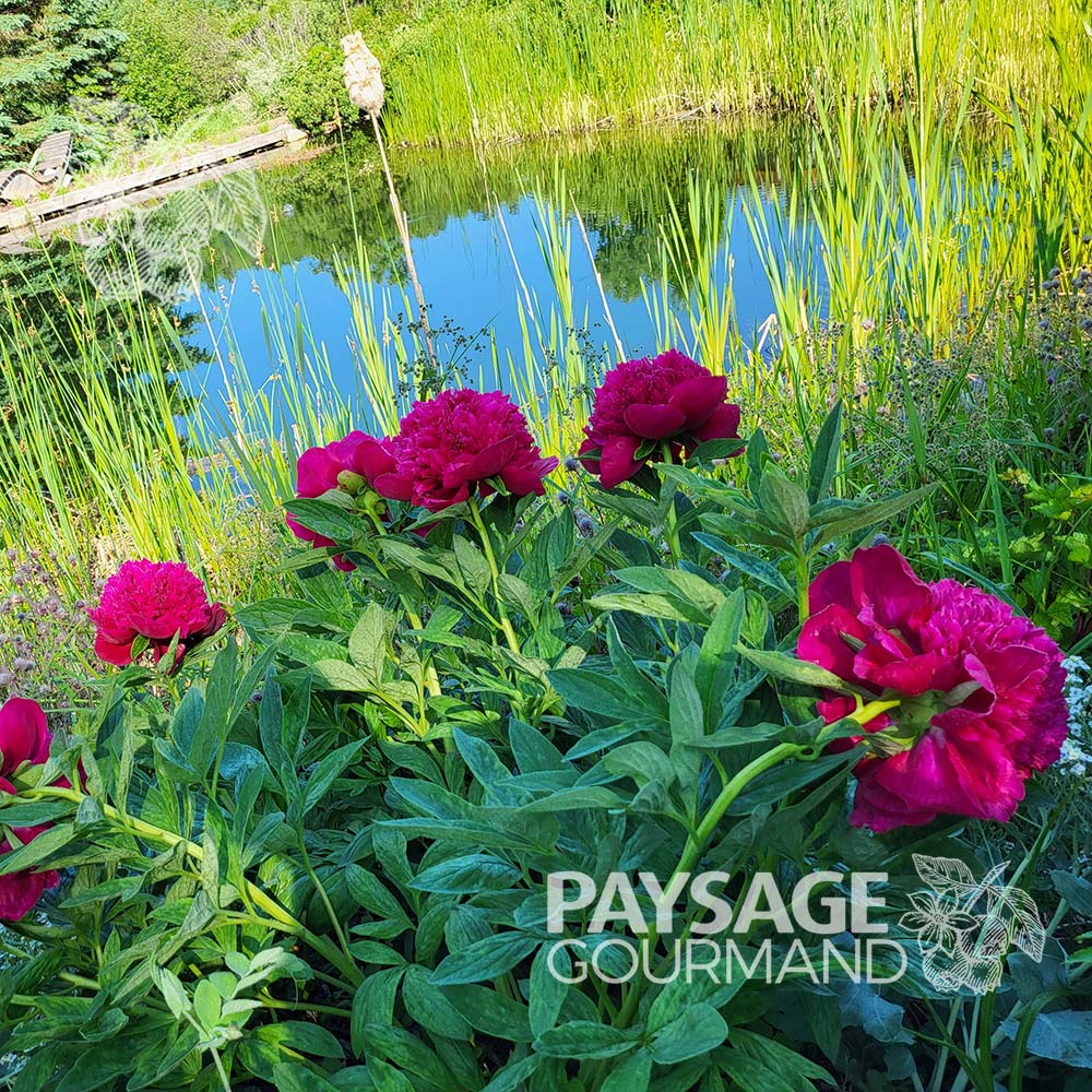 La pivoine ‘Karl Rosenfield’ (Paeonia lactiflora) porte des fleurs rouges doubles parfumées qu’on verra apparaître en juin. Cette variété a été sélectionnée en raison de ses tiges plus fermes qui la soutiennent mieux lors des pluies.